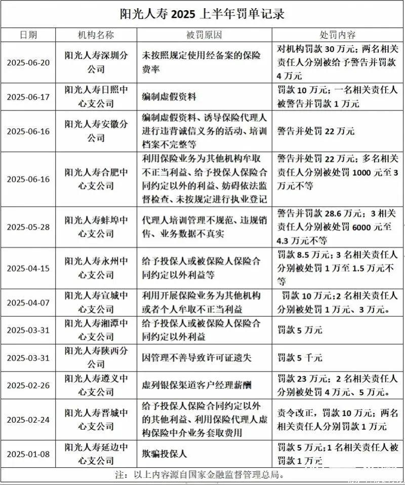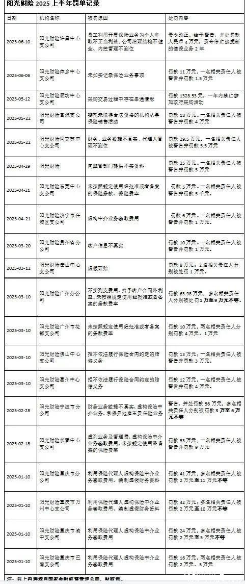然而亮眼业绩的背后,诸多不容忽视的问题正逐一显现。据南都湾财社记者不完全统计,2025年上半年,阳光保险旗下两家子公司累计收罚单超30张,罚金逾760万元;更值得关注的是,阳光财险河南分公司许昌营业部原经理“7623万元骗贷案”暴露出公司内控漏洞。